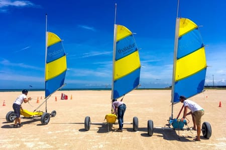 Explore the vast beaches of D-Day, alone or in a group on a (or several) char à voiles, in courses or in rental in autonomy!