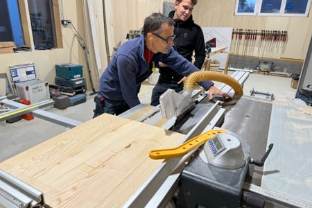 Our wood workshop, located at Les Briques, in Lion-sur-Mer, offers woodworking courses for all levels, safety training for using power tools, project support (we help you make a piece of furniture or an interior project at home), as well as quotes for larger wood projects.